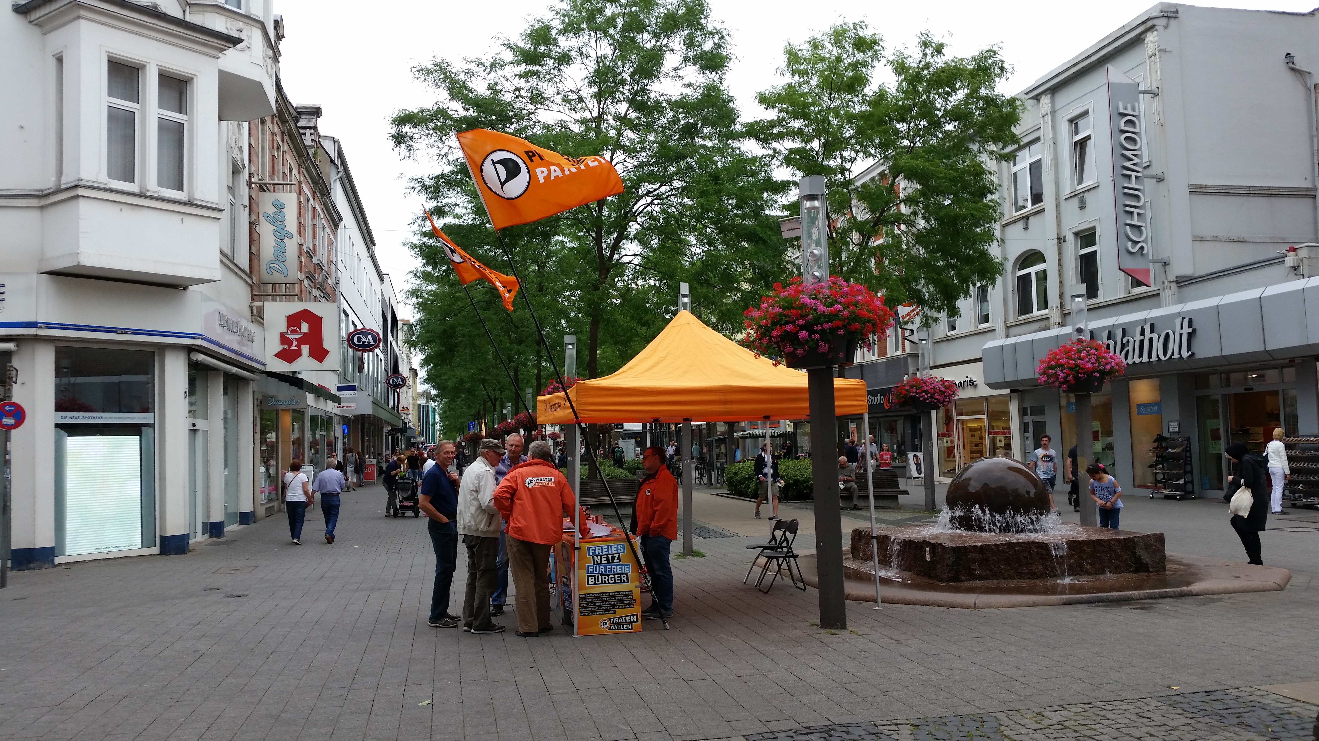Am heutigen Tag waren die Herner Piraten wieder auf der Straße, diesmal mit einem Infostand auf der Bahnhofsstraße in der Innenstadt. Die Piraten in NRW müssen nach dem Ausscheiden aus dem Landtag in NRW Unterstützerunterschriften sammeln. Eines der Ziele des heutigen Infostands, diese auch in Herne zu sammeln, ist gelungen. Wir konnten mit vielen Bügerinnen und Bürgern sprechen und bekamen von vielen die Unterstützung. Diese Unterschriften helfen dem Landesverband, mit einer Landesliste im September an der Bundestagswahl teilzunehmen.