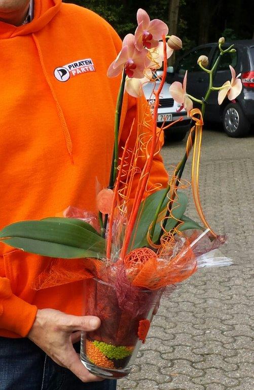 Gestern Nachmittag überreichte eine Delegation der Herner Piraten dem Geschäftsführer des neu eröffneten Möbelhauses „Möbel-Piraten“ einen Blumenstrauß zur Eröffnung – von Pirat zu Pirat.